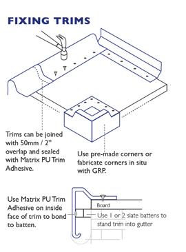 - Installation diagrams can be found in the Short Introduction Guide – Page 3 – Trims. Note edge trims should be secured to batten(s) with Matrix Trim Sealant.